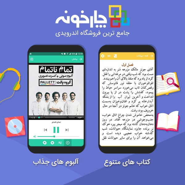 چارخونه دنیایی از کتاب و مجلات، فیلم، برنامه و بازی را از طریق گوشی پیش روی شما میآورد و به عبارتی تمام آنچه شما نیاز دارید در یک چارخونه روی گوشی تلفن همراهتان در دسترس شما قرار خواهد گرفت.