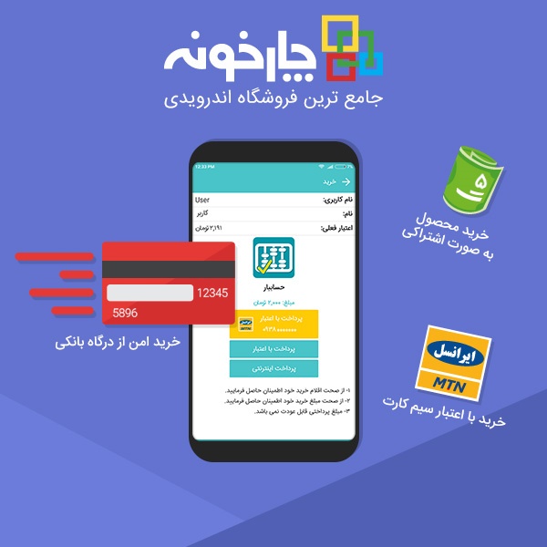 بد نیست بدانید که چارخونه و ایرانسل با هم روابط بسیار خوبی با هم دارند و به دلیل حمایتی که از سوی اپراتور ایرانسل از چارخونه میشود، شما این امکان را دارید که هزینه خرید اپلیکیشنهای مورد نظر را با شارژ ایرانسل خود پرداخت کنید. به این ترتیب هیچ نیازی به کارت بانکی و رمز دوم و ... نیست.