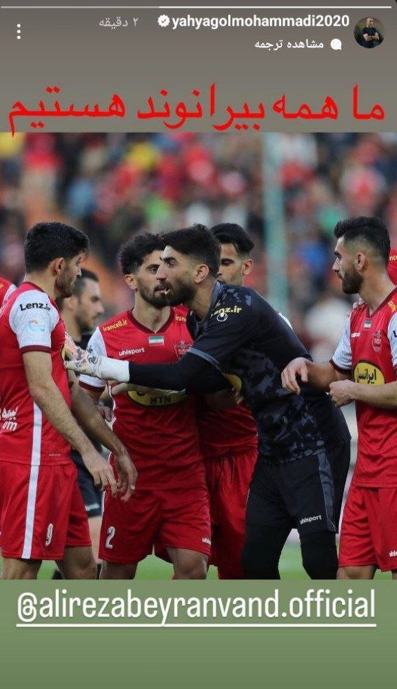 حالا یحیی گل محمدی در حمایت از دروازه بان اول تیم خود استوری منتشر کرد و نوشت: ما همه بیرانوند هستیم.