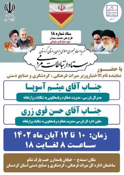 بهگزارش خبرگزاری خبرآنلاین از سنندج، منصور مهرزاد در اینباره گفت: همزمان با دور دوم سفر رئیسجمهوری و هیأت دولت به استان کردستان و با حضور نماینده تامالاختیار وزیر میراثفرهنگی، گردشگری و صنایعدستی به درخواستهای مردمی در این حوزه رسیدگی میشود.