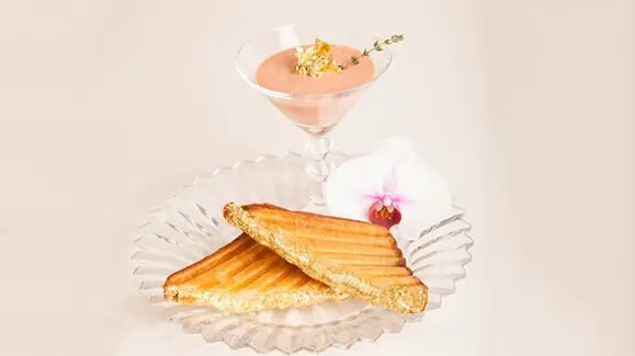 یک ساندویچ «پنیر کبابی» با قیمت ۲۱۴ دلار (حدود ۱۰ میلیون تومان) یکی دیگر از لوکسترین غذاهای جهان است که در کتاب رکوردهای جهانی گینس ثبت شده است. این ساندویچ با طلای ۲۴ عیار خوراکی ترکیب شده و نان آن آغشته به نوعی شامپاین فرانسوی است. پنیرهای کبابی قبل از قرار گرفتن در نان ساندویچ، با کره ترافل سفید طعمدار میشوند.