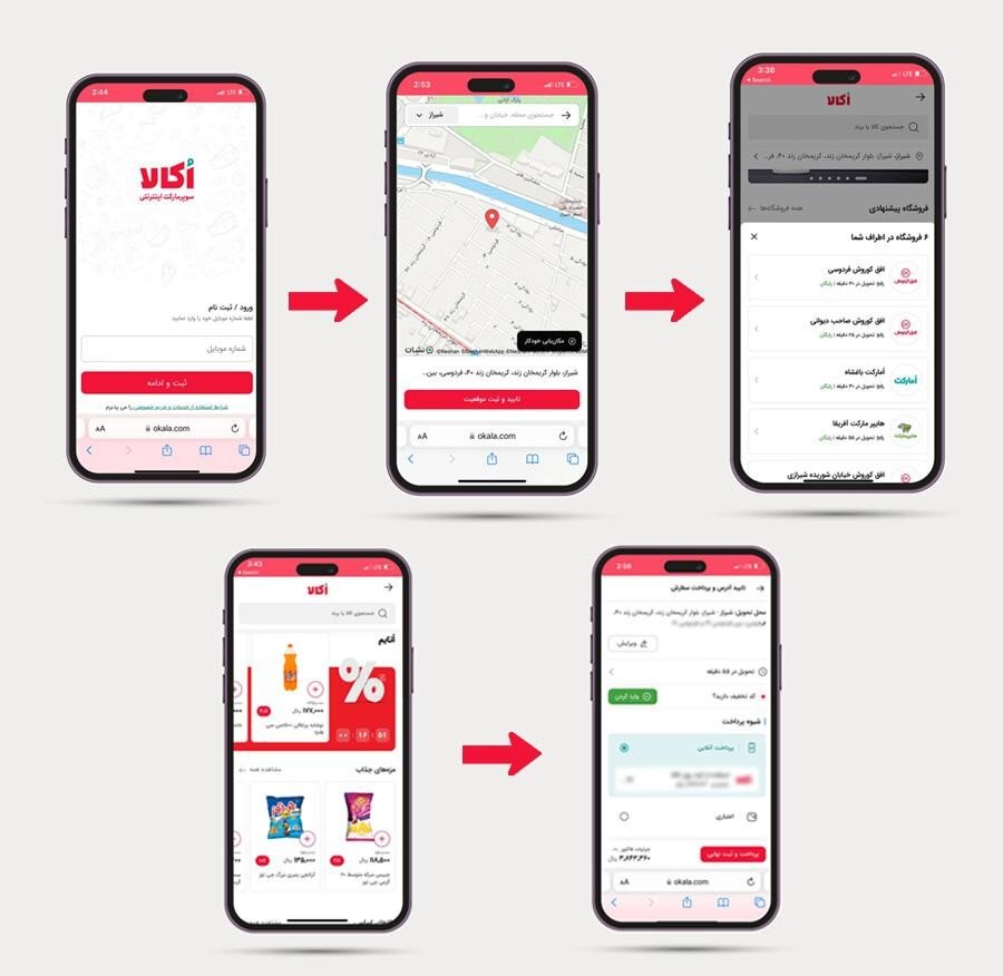 برای خرید کالاهای سوپرمارکتی از اپلیکیشن اکالا موارد زیر را مرحله به مرحله انجام دهید: