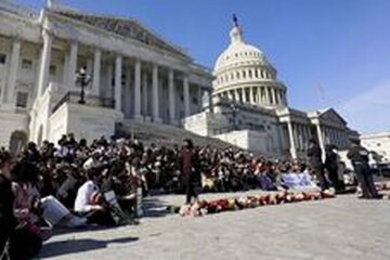 ویدیویی از نصب پرچم ایران و تصویر رهبر انقلاب در مقابل کنگره آمریکا در حین اعتراضات جنبش دانشجویی را ببینید./viral vids