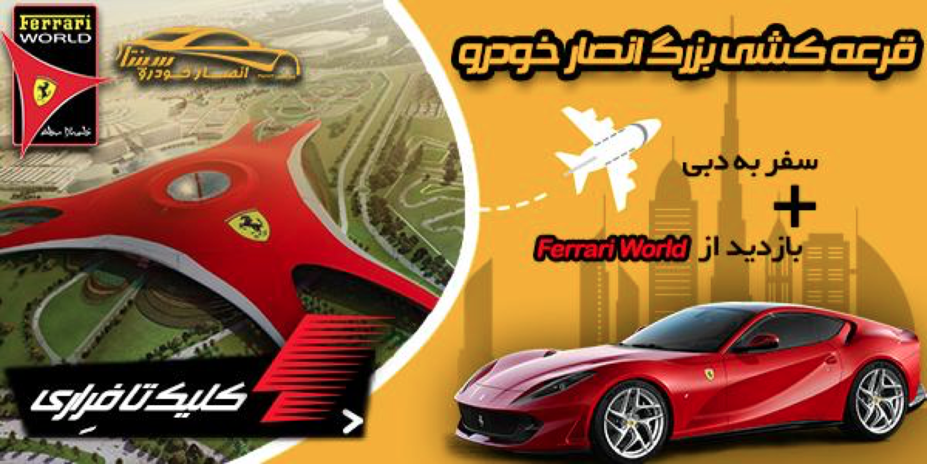 کمپینی با نام"یک کلیک تا فِراری" که جایزه ویژه برنده خوش شانس این قرعه کشی،سفر تکرارنشدنی به دبی (از سیر تا پیازیک سفر هیجان انگیز، از بلیط پرواز تا اقامت در هتل و صبحانه) و بلیط ویژه بازدید از مجموعه Ferrari World هست.
