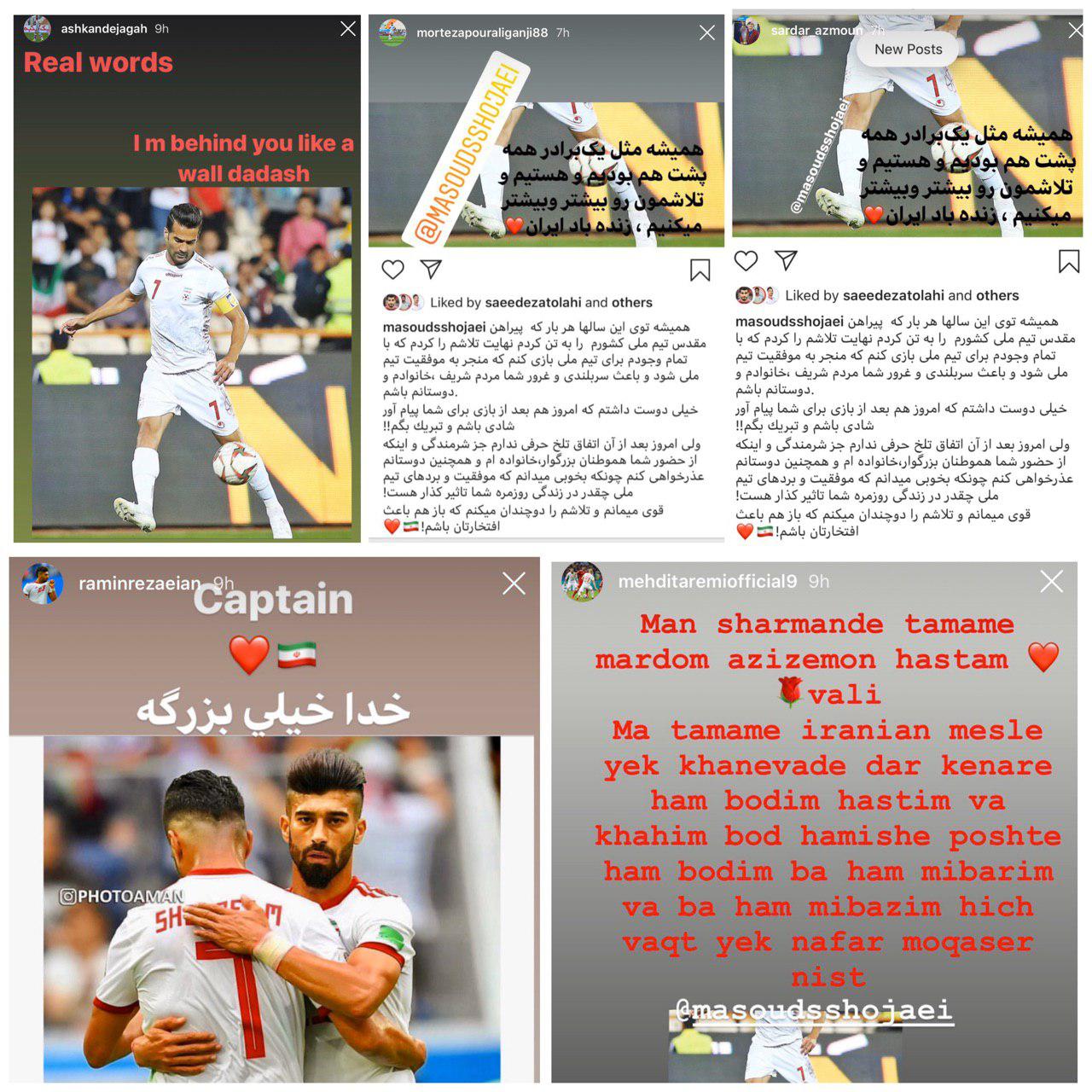 بازیکنان تیم ملی فوتبال ایران در صفحه اینستاگرام خود از کاپیتان تیم ملی حمایت کردند.