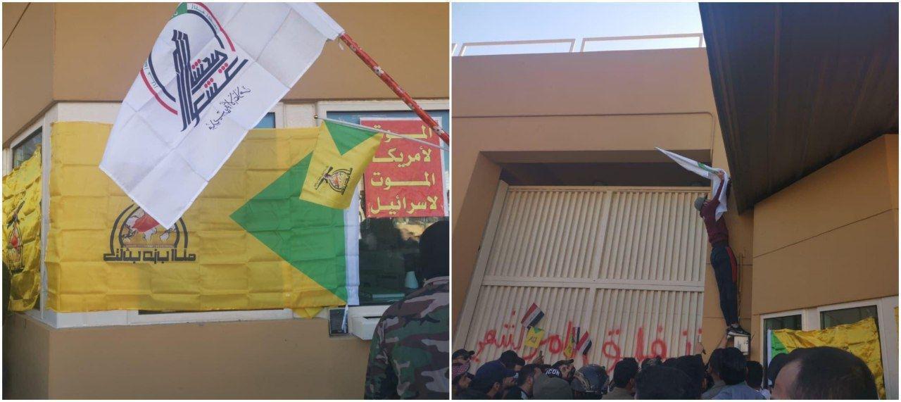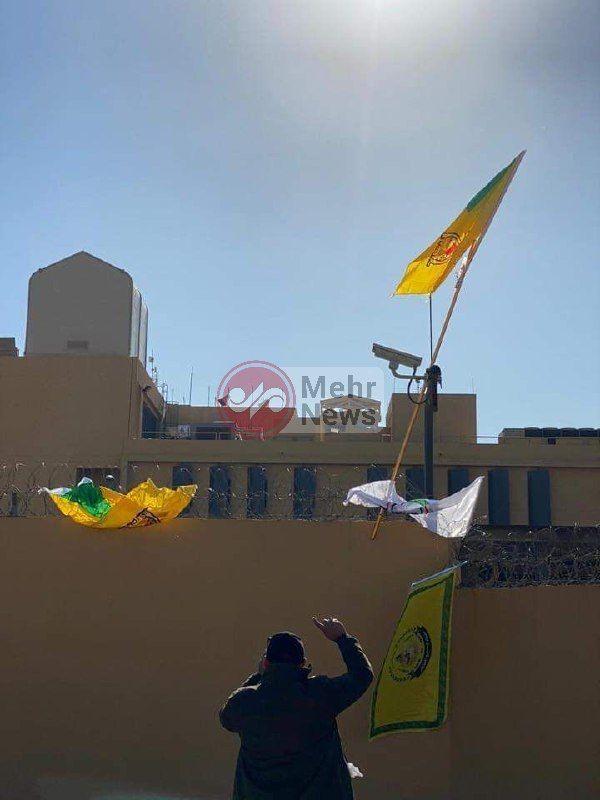 ببینید | پرچم حزب الله عراق، روی دیوار سفارت آمریکا
