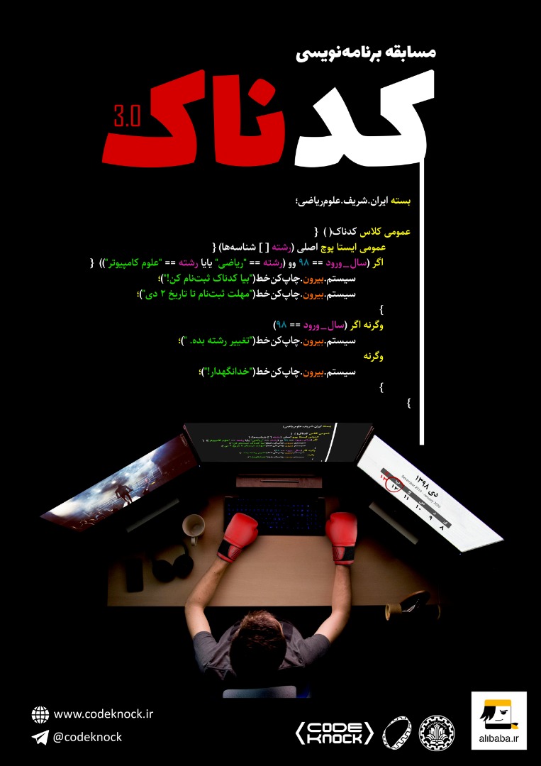 سومین دوره مسابقه برنامه‌نویسی کدناک، با حمایت گروه علی بابا، روز پنج‌شنبه، 12 دی ماه در دانشکده ریاضی دانشگاه صنعتی شریف برگزار می‌شود.
