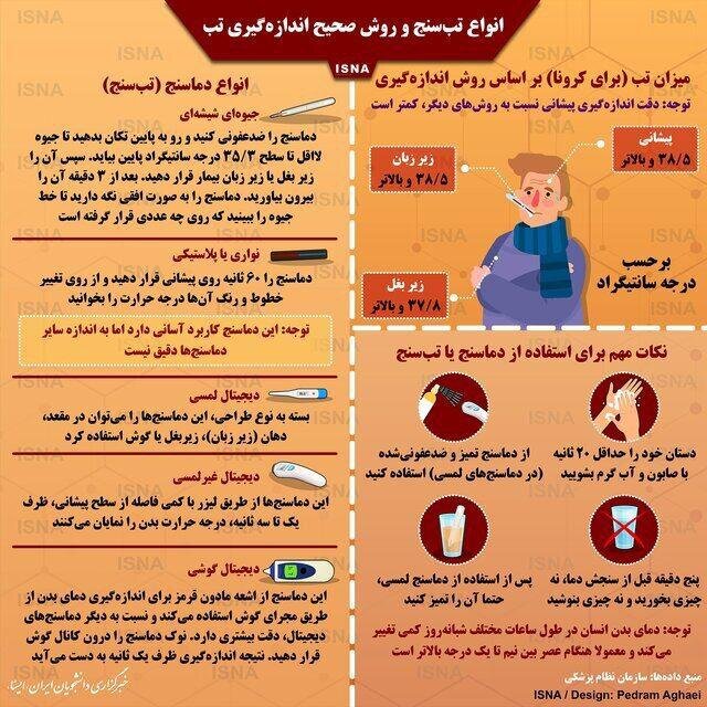 تب یکی از علائم ابتلا به ویروس کرونا (کووید-۱۹) است. دماسنج یا در واقع تبسنج انواع مختلفی دارد و بسته به نوع، روشهای اندازهگیری صحیح به وسیله آنها نیز متفاوت است و میزان درجهای که نشان میدهد ممکن است علائم کرونا داشته باشید نیز مختلف است. منبع: ایسنا