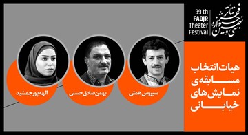 به گزارش خبرگزاری خبرآنلاین، هیات انتخاب بخش مسابقه نمایشهای خیابانی سی و نهمین جشنواره تئاتر فجر متشکل از بهمن صادق حسنی، سیروس همتی و الهه پورجمشید، معرفی شدند.