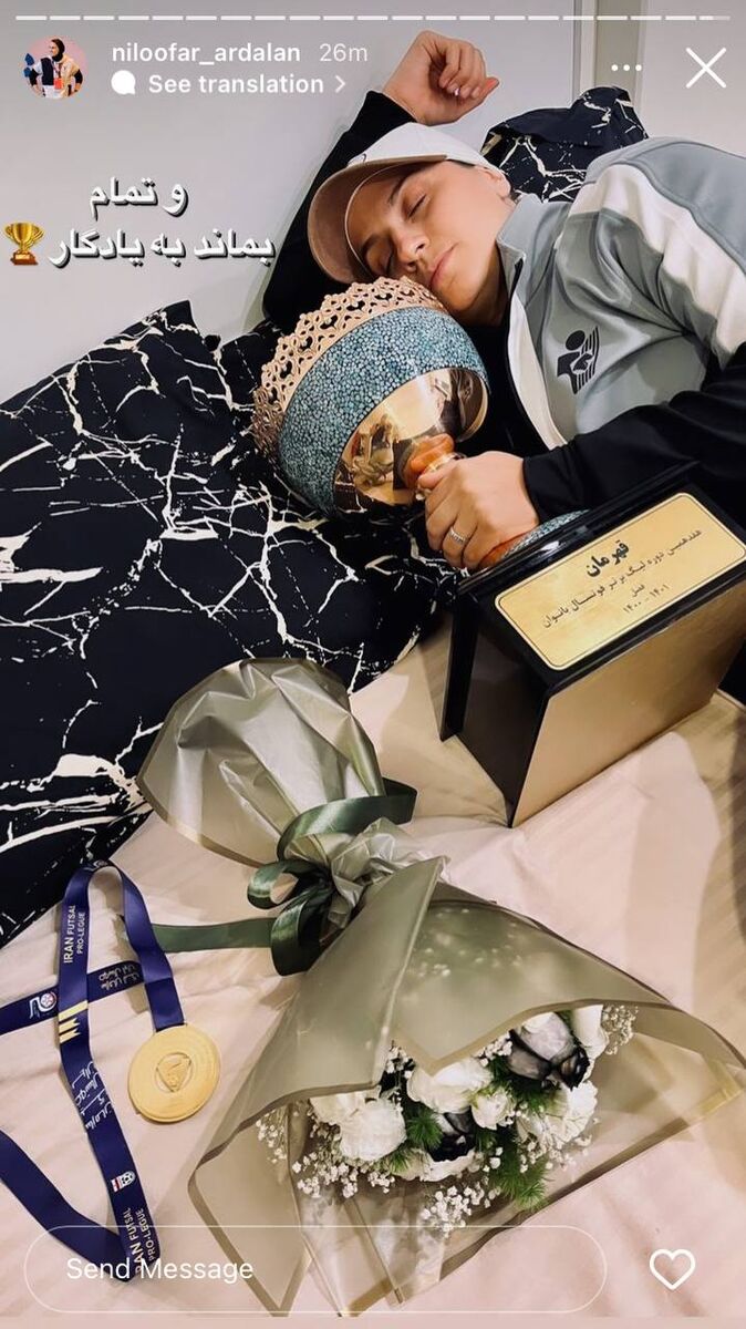 به گزارش خبرگزاری خبرآنلاین؛ نیلوفر اردلان سرمربی جوان پیکانیها که جزو چهرههای فعال در جشن قهرمانی این تیم در لیگ هفدهم فوتسال زنان بود، بعد از اتمام مسابقه هم در فضای مجازی به تبریکهای مخاطبان خود واکنش نشان داد و یک تصویر ویژه را در صفحهی خود بارگذاری کرد.