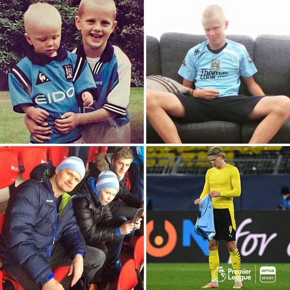 تصاویری از کودکی ارلینگ هالاند و پدرش با پیراهن منچسترسیتی را درادامه می بینید. پدر هالند در گذشته بازیکن سیتیزن ها بوده است.
