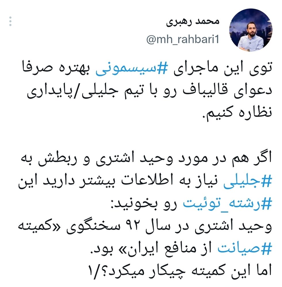 اگر هم در مورد وحید اشتری و ربطش به #جلیلی نیاز به اطلاعات بیشتر دارید این #رشته_توئیت رو بخونید:
