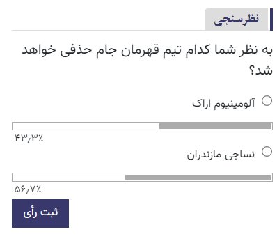 در این نظر سنجی، ۵۶/۷ درصد به برتری نساجی و ۴۳/۳ درصد به برتری آلومینیوم رای دادند.