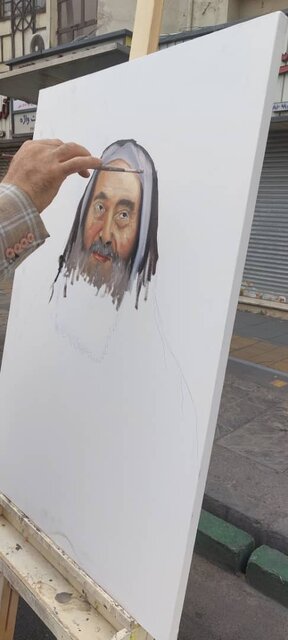 در مسیر راهپیمایان روزه دارد روز قدس فردی چهره شیخ احمد یاسین از مبارزان برجسته مقاومت فلسطین را نقاشی میکرد.
