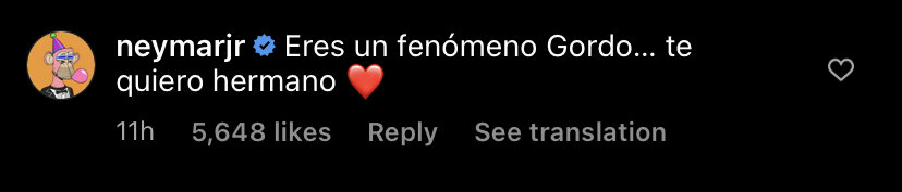 نیمار نیز نوشت: تو فوقالعاده هستی پسر. دوستت دارم برادر.