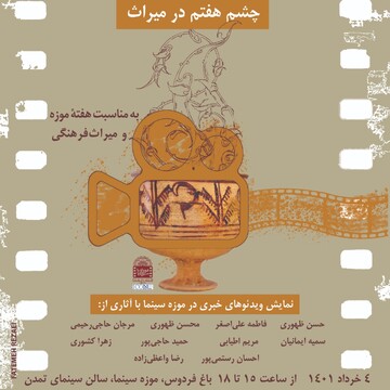 به گزارش خبرگزاری خبرآنلاین به نقل از روابطعمومی موزه سینما، علاقهمندان به دیدن فیلمهای نخستین دوره نمایش «چشم هفتم در میراث» که به اکران فیلمهای کوتاه خبری با موضوع موزه و میراث فرهنگی اختصاص دارد و با همکاری ایکوم (شورای بینالمللی موزهها) و موزه سینمای ایران برگزار میشود میتوانند روز چهارشنبه چهارم خردادماه ۱۴۰۱ از ساعت ۱۵ تا ۱۸ به سالن تمدن موزه سینمای ایران مراجعه کنند.