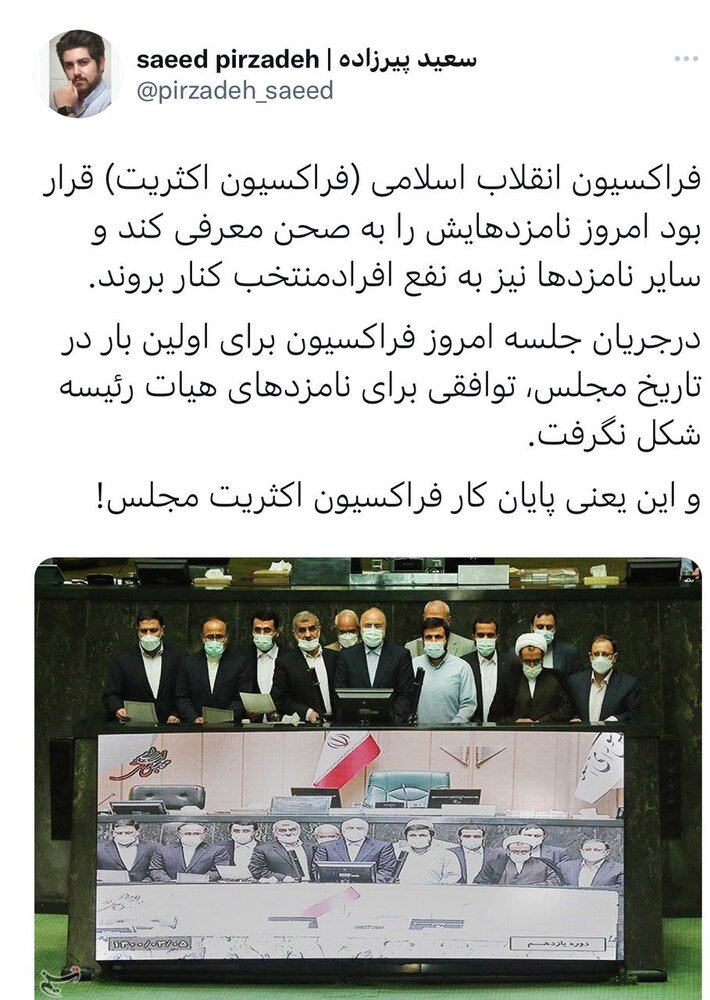 اسامی داوطلبان فراکسیون انقلاب اسلامی برای کاندیداتوری در انتخابات هیات رییسه به شرح زیر است: