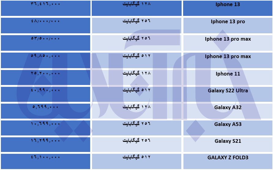قیمت روز موبایل های سامسونگ و آیفون در جدول زیر آمده است: