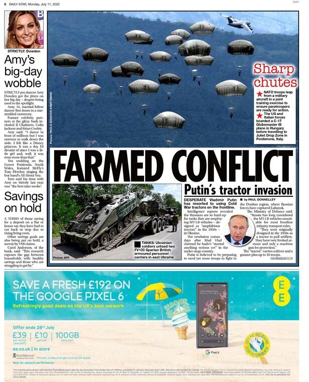 روزنامه دیلی استار در صفحه خود از این اقدام پوتین به عنوان "حمله تراکتوری" یاد کرده است!