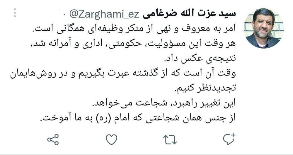 امر به معروف و نهی از منکر وظیفه ای همگانی است. هر وقت این مسؤولیت، حکومتی، اداری و آمرانه شد، نتیجه ی عکس داد. وقت آن است که از گذشته عبرت بگیریم و در روش هایمان تجدیدنظر کنیم. این تغییر راهبرد، شجاعت می خواهد. از جنس همان شجاعتی که امام (ره) به ما آموخت.