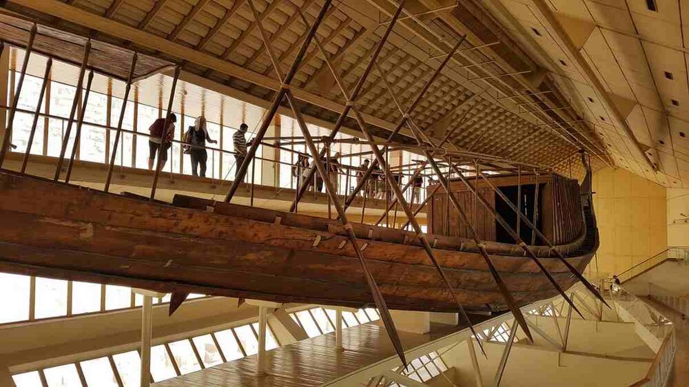 ۴- کشتی خوفو که یکی از قدیمیترین و بزرگترین کشتیهای باستانی به حساب میآید ۴۳.۶ متر طول و ۵.۹ متر عرض دارد و شکل ظاهری آن به طور کامل حفظ شده است.