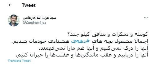 کومله و دمکرات و منافق کیلو چند؟ اجمالا مشغول بچه های دهه هشتادی خودمان شدیم. آنها را درک نمی کنیم و آنها هم ما را نمی فهمند. آنها را دریابیم و عقب ماندگی ها و غفلت ها را جبران کنیم.
