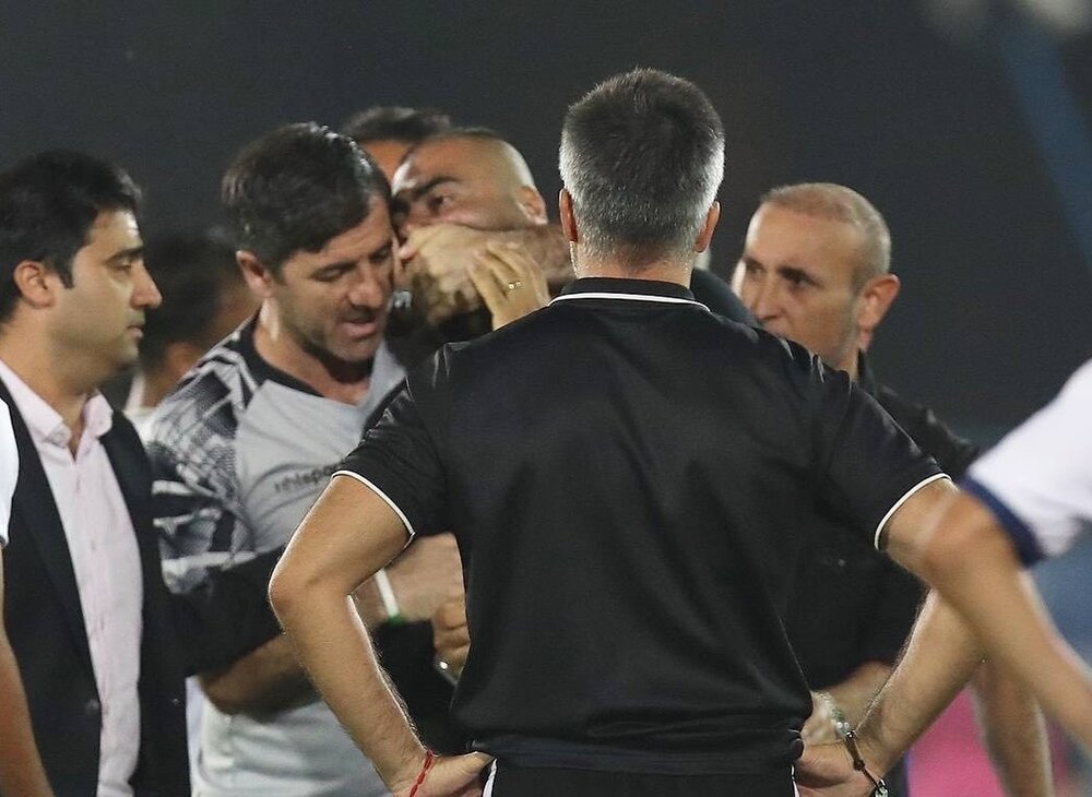 در دقایق پایانی این بازی مازیار زارع در اعتراض به یک صحنه از داور کارت زرد گرفت و در ادامه و در حالی که مشغول صحبت با بازیکن نیمکت نشین تیمش بود کارت زرد دوم را از دارو گرفت و از زمین بازی اخراج شد. همین کارت زرد دوم باعث شد تا زارع از کوره در برود و به داور حمله کند. او حتی با دست به سینه داور کوبید و به سمت او حمله ور شد. در همین میان کریم باقری دستیار گل محمدی در پرسپولیس که زمانی با زارع در همین تیم همبازی بود، به سراغ او رفت و با گرفتن دهانش مانع داد و بیداد شد. باقری پیش از این مقابل بازیکنان خودی این رفتارها را انجام میداد و حالا مازیار زارع هم توسط کریم باقری ارشاد شد.