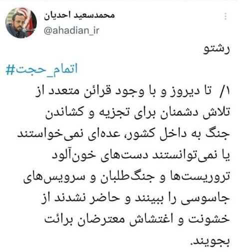 محمدسعید احدیان دستیار سیاسی رسانهای رییس مجلس نوشت: