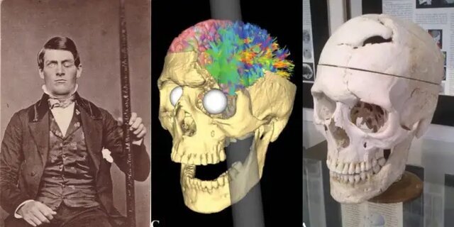 یکی از نمونههایی از نحوه اتصال ماده سفید به مناطق غیرمنتظره مغز، بررسی آسیب باورنکردنی به مغز یک کارگر راه آهن در ۱۵۰ سال پیش است. در سال ۱۸۴۸، "فینیاس گیج"(Phineas Gage) که در آن زمان ۲۵ سال داشت، در حال جمع کردن مواد منفجره در یک تخته سنگ با میله آهنی بود که باروت منفجر شد و میله مستقیما به جمجمه او پرتاب شد.