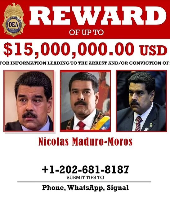 به نقل از دیلی میل، نیکولاس مادورو، رهبر ونزوئلا در مارس ۲۰۲۰ از سوی وزارت دادگستری آمریکا به تروریسم، فساد و قاچاق مواد مخدر متهم شد و ایالات متحده آمریکا. برای «اطلاعاتی که منجر به دستگیری مادورو شود» ۱۵ میلیون دلار جایزه تعیین کرد.