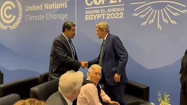 سخنگوی وزارت امور خارجه آمریکا تاکید کرد، فرستاده ویژه رئیس جمهوری آمریکا در امور محیط زیست هنگامی که رئیس جمهور ونزوئلا در جریان نشست آب و هوایی سازمان ملل موسوم به COP۲۷ در قاهره به وی نزدیک شد و دست داد، شوکه و شگفتزده شد.