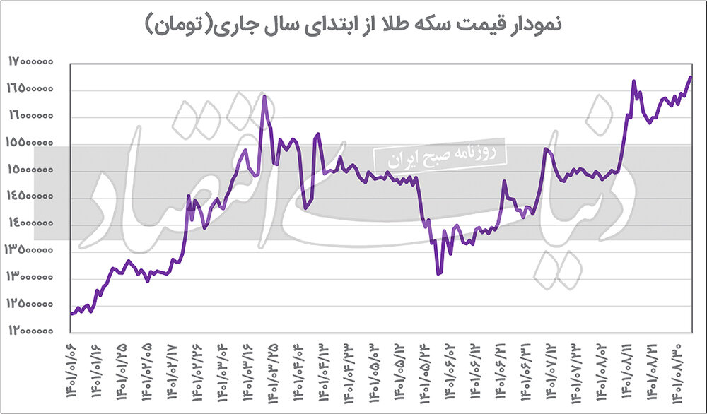 رشد قیمت سکه از ابندای سال جاری را در نمودار می بینید.