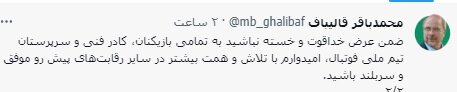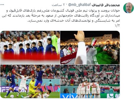 رییس مجلس در پیامی بعد از بازی ایران و آمریکا نوشت: