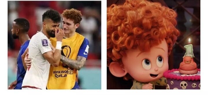 یکی از بازیکنان آمریکا در حال دلداری دادن رامین رضاییان بود که نکته جالب این جا بود که این بازیکن بسیار شبیه یکی از شخصیت های کارتونی است.