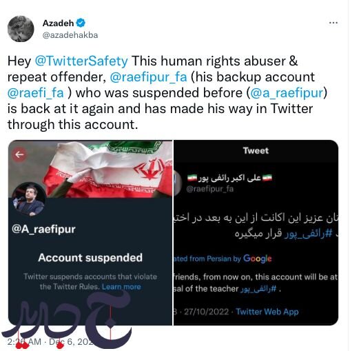 جدیدپرس نوشت: توییتر پس از گزارش کاربران، سه اکانت علی اکبر رائفیپور را معلق کرد.