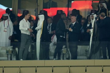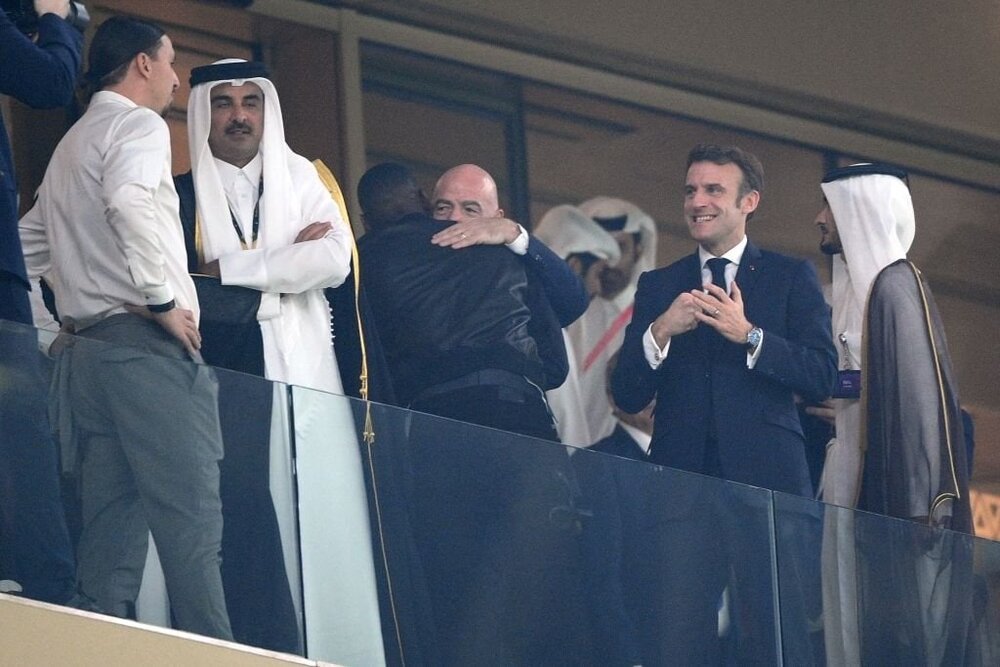 در تصاویر منتشر شده مکرون رئیس جمهور فرانسه و رئیس فیفا نیز دیده می شوند.