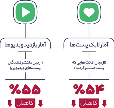 پس از فیلترینگ اینستاگرام آمار لایک پستهای اکانتهایی که پست منتشر کردهاند، ۵۴ درصد کم شده است. همچنین ویدیوهای این اکانتها هم ۵۵ درصد به نسبت پیش از فیلترینگ کمتر بازدید داشته است.