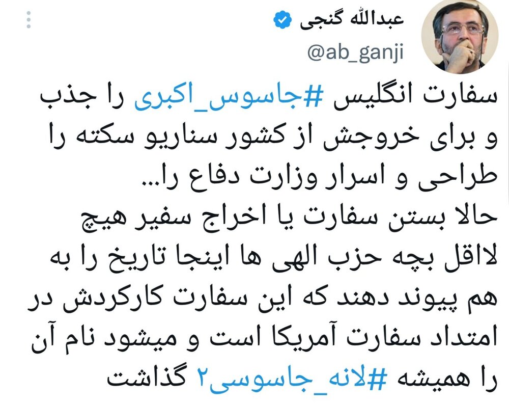 سفارت انگلیس جاسوس اکبری را جذب و برای خروجش از کشور سناریو سکته را طراحی و اسرار وزارت دفاع را ...
