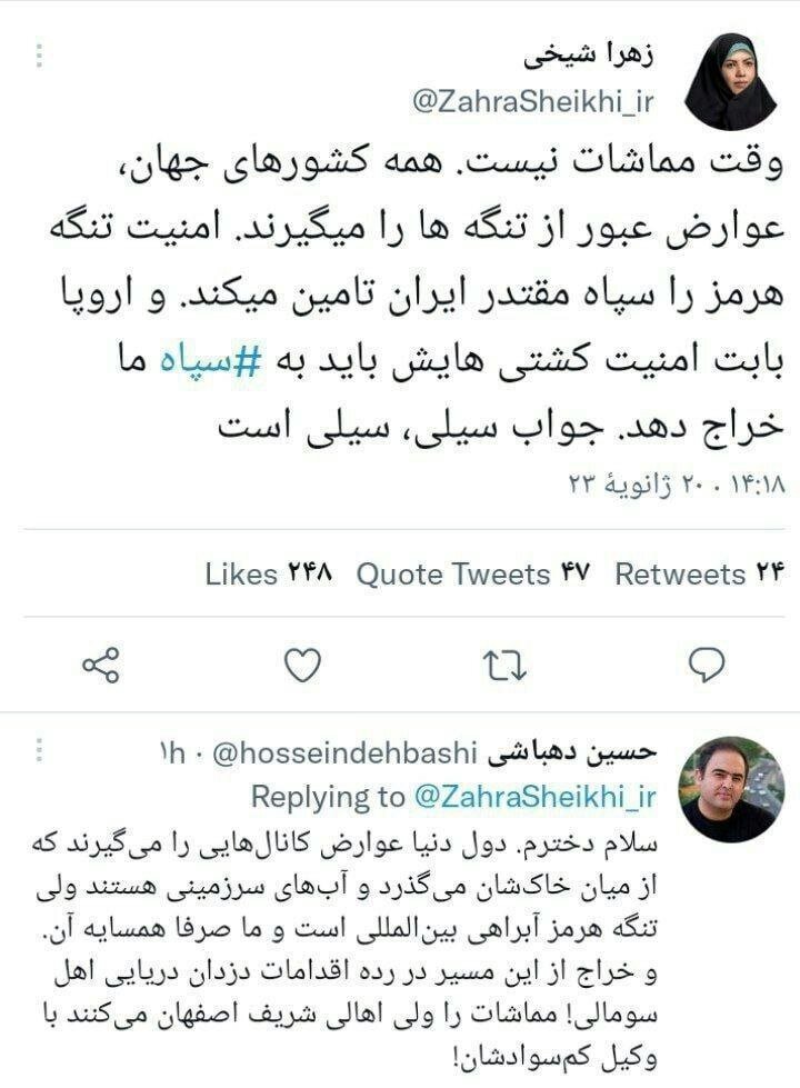 سلام دخترم . دول دنیا عوارض کانال هایی را می گیرند که از میان خاکشان می گذرد و آبهای سرزمینی هستند ولی تنگه هرمز آبراهی بینالمللی است و ما صرفا همسایه آن .و خراج از این مسیر در رده اقدامات دزدان دریایی اهل سومالی ! مماشات را ولی اهالی شریف اصفهان می کنند با وکیل کم سوادشان !