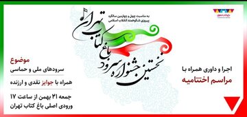 نخستین جشنواره سرود باغ کتاب تهران روز جمعه ۱۹ بهمن ماه با اجرای نرجس شایان از ساعت ۱۷ تا ۲۰ در ورودی اصلی این مجموعه برگزار میشود و حسین حقیقی نیز اجرای پایانی آن را برعهده خواهد داشت.
