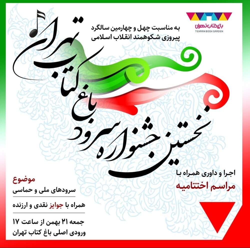 به گزارش خبرگزاری خبرآنلاین، نخستین جشنواره سرود باغ کتاب تهران به مناسبت دهه فجر و سالگرد پیروزی انقلاب اسلامی با حضور برگزیدگان جشنواره سرود فجر و جشنوارههای سرود دانش آموزی روز جمعه ۱۹ بهمن در باغ کتاب تهران برگزار میشود.