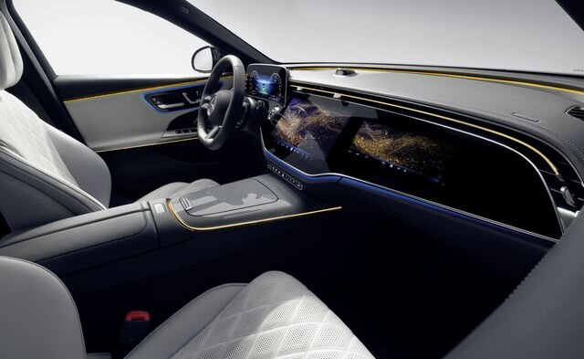 پر شدن کابین از چند نمایشگر به جدیدترین نسل E کلاس هم رسیده و در این خودرو با هایپراسکرین مرسدسبنز که قبلتر در خودروهای برقی این شرکت مثل EQS و EQE دیده بودیم،مواجه هستیم.