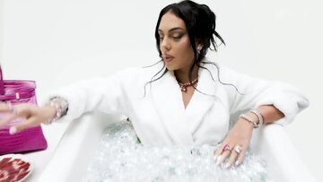 این عکس ها که به نظر میرسد مربوط به یک جلسه عکاسی است درحالی گرفته شده است که جورجینا با پوشیدن یک روسری بلند عکسهای مربوط به پشت صحنه آن را به اشتراک گذاشت و نوشت: «روز فیلمبرداری».