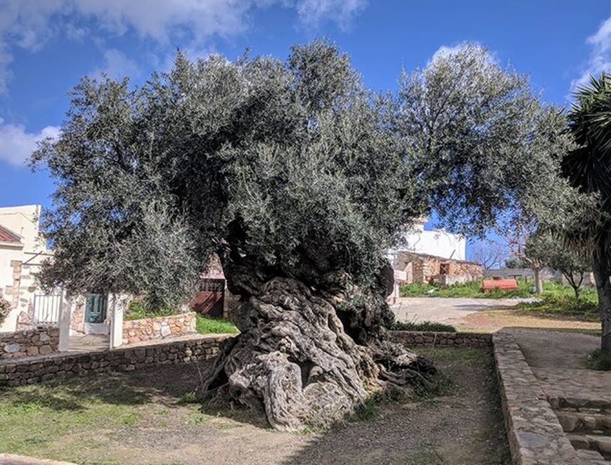 زیتون دستکم از ۳۰۰۰ سال پیش در «کرت» کشت میشد. تعیین قدمت دقیق این درخت قدیمی از چند نظر دشوار است؛ تاریخگذاری ایزوتوپی امکانپذیر نیست، زیرا مغز چوپ درخت در تنه پیچ خورده ۴.۵ متری آن پوسیده شده است. با این حال، حلقههای آن نشان میدهد که این درخت دستکم دو هزار سال سن دارد. با این حال برخی تخمینهای دیگر قدمت این درخت را تا ۴۰۰۰ سال میرسانند.
