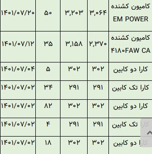 بر این اساس، در روزهای ۲۸ و ۳۱ اردیبهشت و همچنین اول، دوم و سوم خردادماه جمعا ۱۳۹ دستگاه خودرو کارا تک کابین و کارا دو کابین در بورس کالا عرضه شد. درواقع در ۲۸ اردیبهشت سال گذشته ۴۸ دستگاه کارا دو کابین و ۴۵ دستگاه کاراتک کابین در بورس کالا عرضه شد.