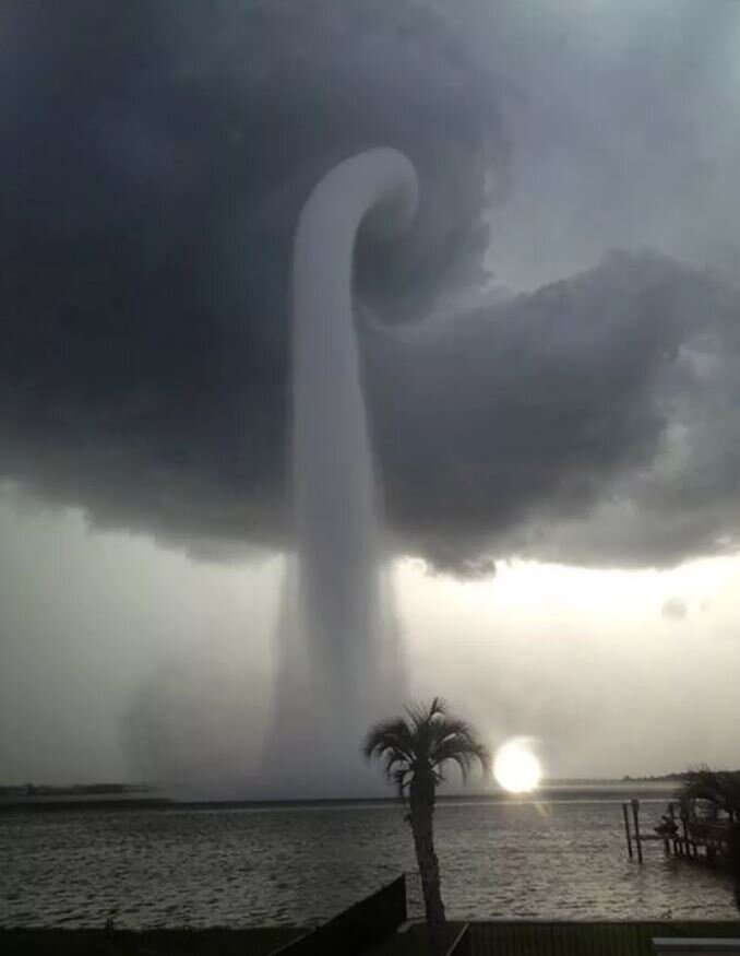 این تصویر در ژوئیه ۲۰۱۳ در نزدیکی خلیج تامپا واقع در فلوریدا گرفته شده است. هر ساله صدها تنوره دریایی در اقیانوس اطلس در نزدیکی سواحل فلوریدا رخ میدهد که باعث شده است فعالترین منطقه از نظر تنورههای دریایی در جهان باشد.