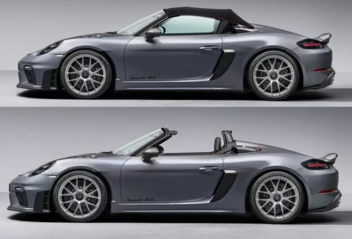 مطابق انتظار، تنها تفاوت اسپایدر RS با کیمن GT4RS مربوط به سقف است. خودروی جدید، ۱۴۱۰ کیلوگرم وزن دارد و ۴۰ کیلوگرم سبکتر از ۷۱۸ اسپایدر معمولی محسوب میشود. همچنین، ارتفاع کف بدنه تا زمین، با وجود رینگهای ۲۰ اینچ، ۳ سانتیمتر کمتر خواهد بود.