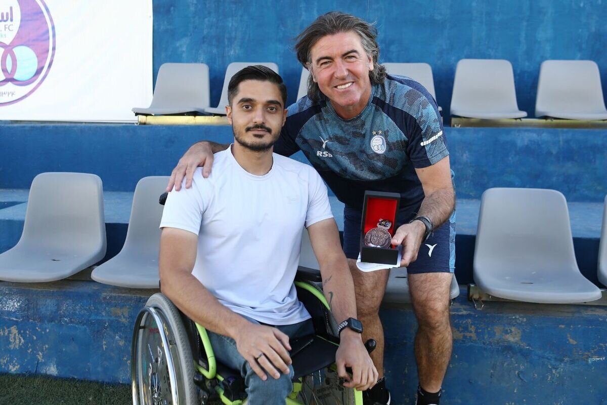 فرزاد که اخیرا در مسابقه دو ماراتن شرکت کرده و مسافت ۴۲ کیلومتری را با ویلچر پشت سر گذاشته بود مدال خود را به سرمربی استقلال اهدا کرد.