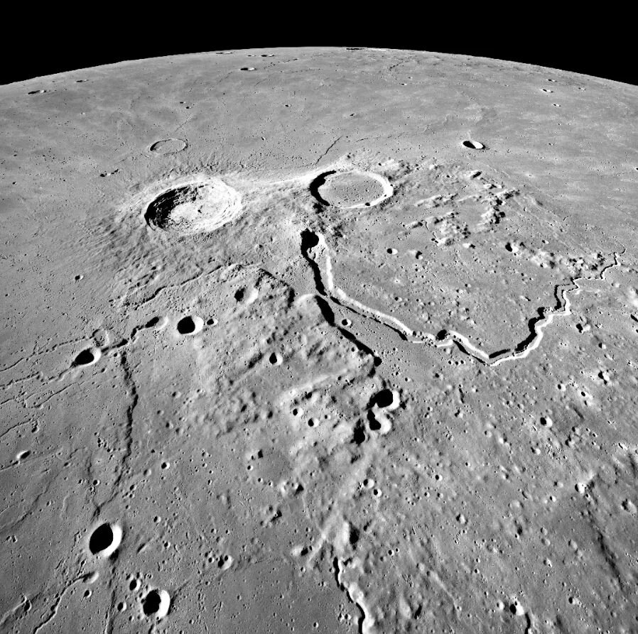 دور شدن از پایگاه‌های قطبی در ماه، مناظری را به نمایش می‌گذارد که شبیه هیچ‌چیز روی زمین نیست. دشت‌های گدازه‌ای وسیع و کوه‌های بزرگ ناشی از رویدادهای برخوردی که بلندترین آنها حدود ۵٫۵ کیلومتر ارتفاع دارد و تقریباً به اندازه‌ی کوه دماوند در ایران است.