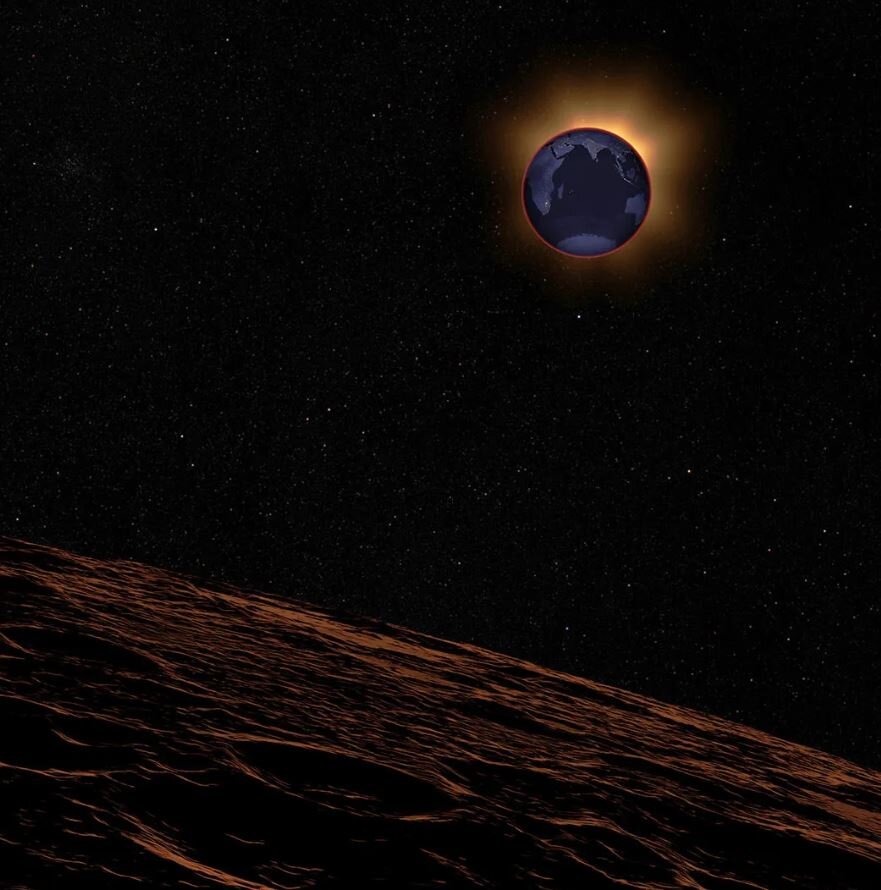 یکی دیگر از عجایب خیره‌کننده و شگفت‌انگیز در ماه، خورشید گرفتگی است که زمانی رخ می‌دهد که زمین خورشید را مسدود می‌کند. از ماه، زمین به صورت حلقه ای از نور قرمز و نارنجی ظاهر می‌شود که بر آسمان تسلط کامل دارد.